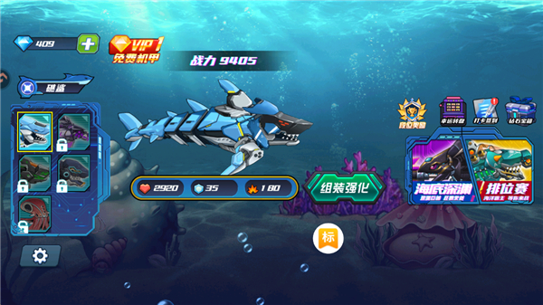 8、积累足够钻石后可解锁高级装备,强化鲨鱼作战能力