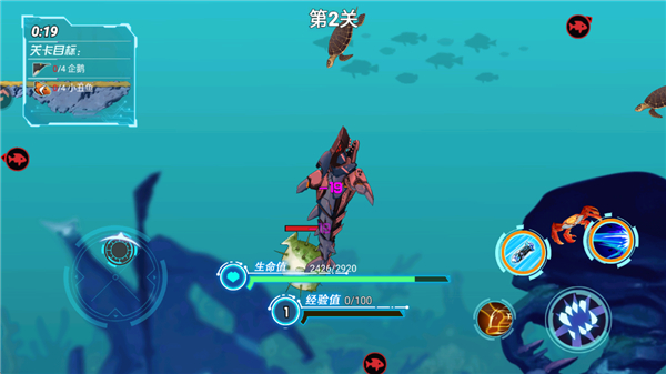 6、通过攻击键吞噬其他海洋生物获得成长,注意避开有毒生物以免损失生命值