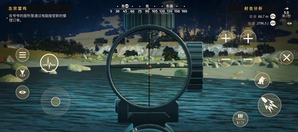 1.实时改变狩猎环境,晨雾会降低视野距离,强风使子弹产生偏移,需要调整瞄准位置。