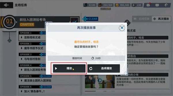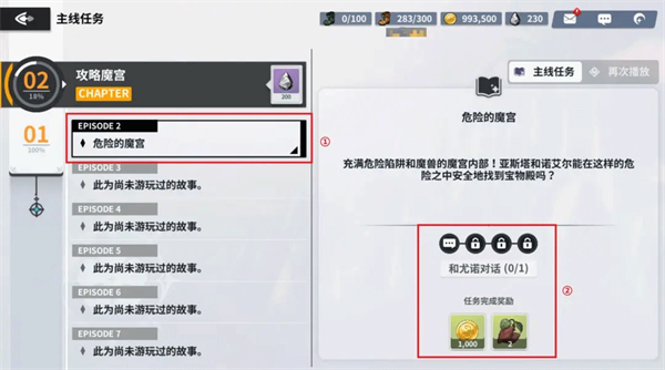 1、任务界面清晰标注章节(CHAPTER)和篇章(EPISODE)