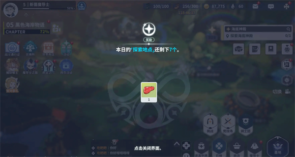 1、地图上发光处为探索点,点击可获得随机奖励