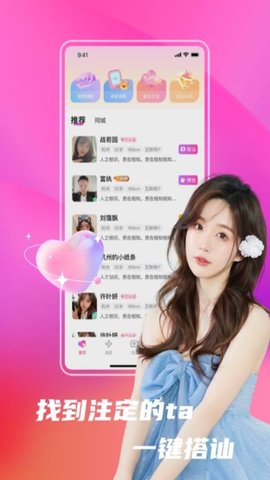 从线上兴趣群聊、主题派对到线下同城约会,结合定位服务,帮助用户快速拓展线下社交圈。