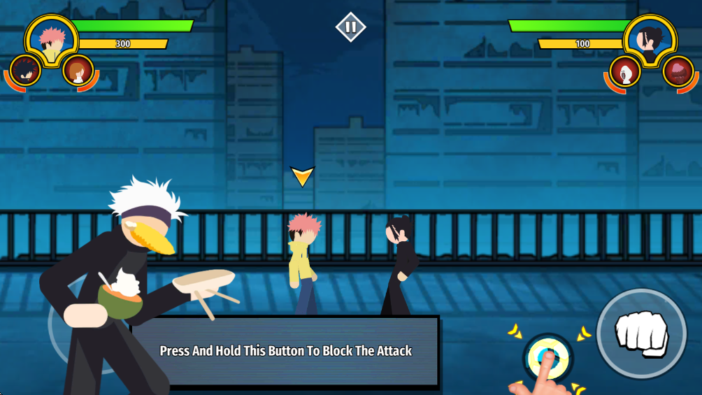 2、通过左下角虚拟摇杆控制角色移动,靠近敌人进入攻击范围