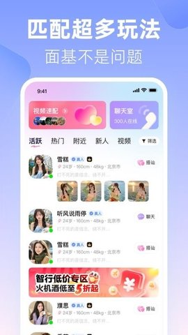 一键开启实时视频匹配,与在线异性进行面对面聊天,直观了解外貌、谈吐与性格。