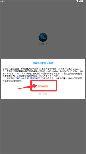 1、启动应用后仔细阅读用户协议与隐私政策,点击同意按钮完成授权并进入主界面。