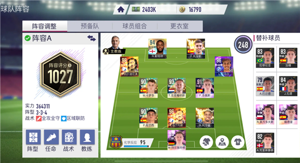 球员培养:前期不要急于使用85-89评分的球员,优先凑满100化学反应。其他队伍的85-89评分球员可以用来合成90评分球员,尽快集齐璀璨巨星球员并突破至95评分,战力将获得显著提升。