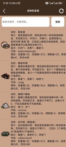 可查询游戏内角色的属性技能、物品的获取途径与合成配方,还包含建筑建造方法、食物食谱效果等内容。
