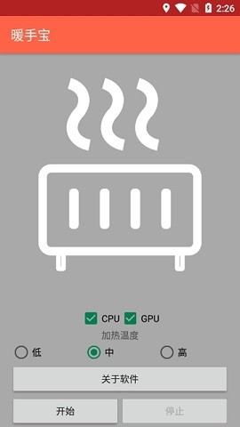 打开软件后,在主界面点击启动或开始加热按钮,即可开启取暖功能。