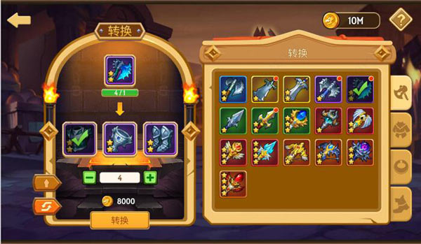 装备转换是锻造之家的另一重要功能,可消耗一定数量金币,将一件装备转换为相同级别的其他部位的装备。另外,需要说明的一点就是,只有背包中的装备可以用于合成或转换,英雄穿戴的装备不能用于合成或转换
