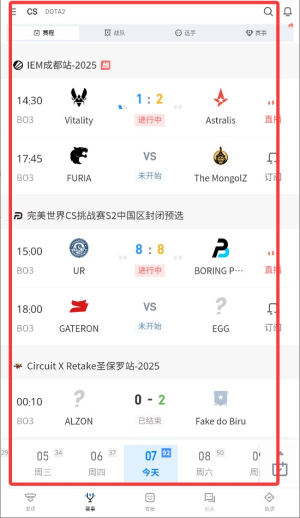 3、在赛事列表页面中,您可以浏览所有正在进行或即将开始的电竞比赛,并根据个人兴趣选择特定赛事进行关注。