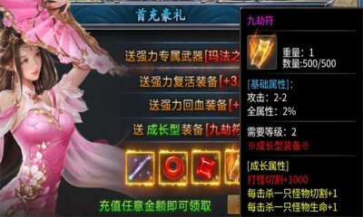 8.成长礼包开启后获得的比奇专属容器需及时查验,三个容器均含有强力属性加成,在角色面板可详细查看具体数值。
