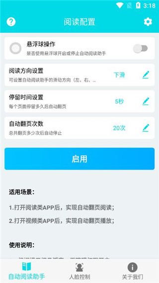 3、完成设置后,点击主界面的开启按钮或通过悬浮球快捷启动自动阅读模式,应用将按照预设参数自动执行阅读操作。