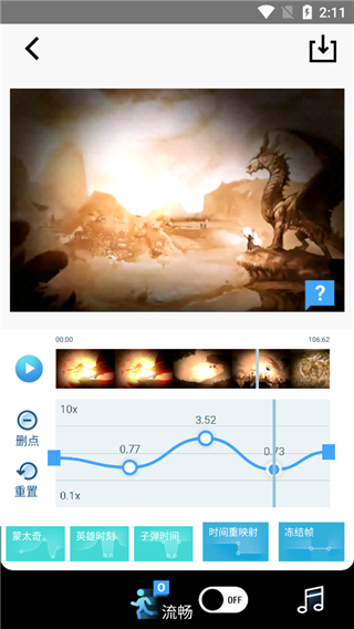 内置强大的曲线变速编辑器,允许用户自定义速度变化曲线,轻松制作出先加速后减速或随音乐节拍变化的创意视频。