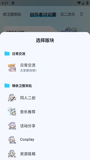 2、点击底部导航栏的"板块"选项,可以查看详细的分类板块,包括新番讨论、游戏攻略、声优资讯、漫画连载等垂直领域内容。