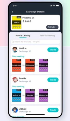 功能完全围绕 PTCGP 的卡牌收集、交易、社交需求设计。