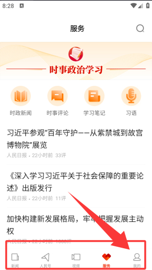 1、每日上线后,建议首先浏览首页的各类新闻分类,包括时政、经济、社会等板块,获取最新资讯信息。