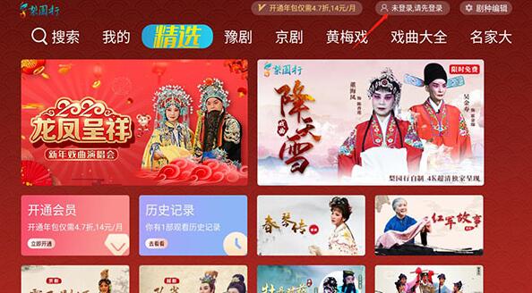 4、成功登录后,界面会显示您的账号信息,此时即可畅享梨园行戏曲TV提供的各类戏曲节目。