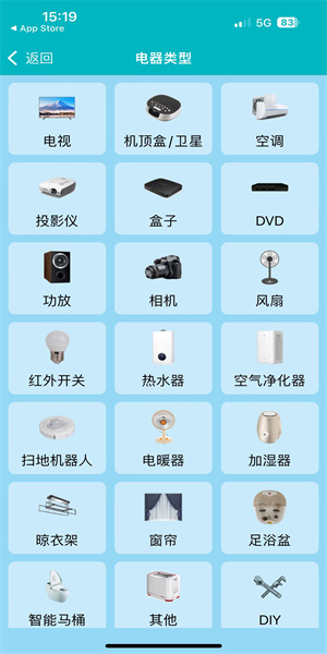 2、从丰富的家电类型中选择您需要控制的设备,包括空调、电视、投影仪等多种电器。