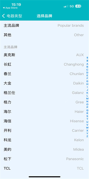 3、根据您家中实际使用的电器品牌,在列表中选择对应的品牌名称。