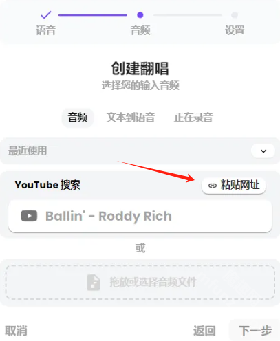通过以下任意方式导入音频内容:复制YouTube视频链接自动解析音频、上传本地存储的歌曲文件(支持常见格式)、使用麦克风实时录制人声,或直接输入文本内容(1000字以内)转换为语音。