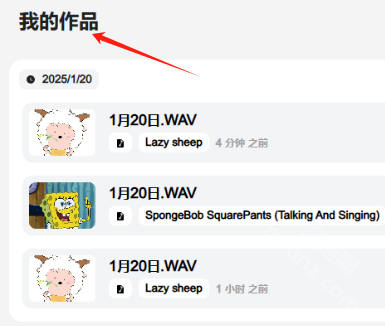 处理完成后可在“我的创作”栏目试听作品,满意后支持下载保存或分享至社区平台。