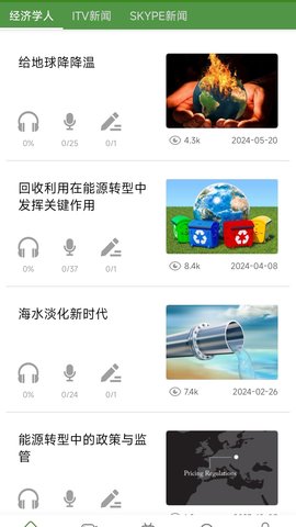 在本站下载安装完成后,首次启动需要完成简单的水平测试,系统会根据结果推荐合适的学习内容。主界面分为文章、词汇、视频和我的学习四个主要板块,点击相应图标即可进入。
