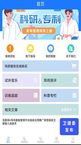 联合浙江省中医院、上海岳阳医院、南京鼓楼医院等多家三甲机构,提供远程耳鸣康复服务。