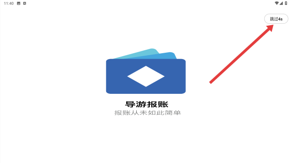 2、易途导游报账app启动页,展示品牌标识和报账从未如此简单标语,右上角有跳过按钮可跳过广告。