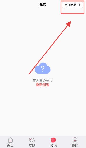 2、进入App后,切换到【私信】栏目,点击右上角的【+】号按钮;