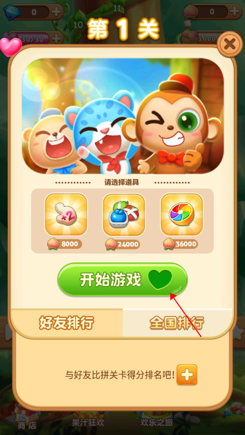 2、选择关卡,点击“开始游戏”,每次开始都会消耗一颗爱心。
