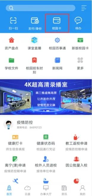 软件集成虚拟校园卡功能,支持手机支付码消费和NFC门禁,方便师生校园出行与生活。