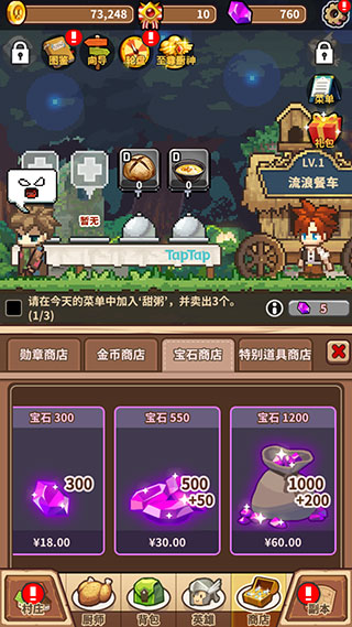 通过派遣英雄探索森林、矿山、遗迹等副本,击败恶魔获取稀有食材,上百种食材可自由组合,解锁新菜谱。