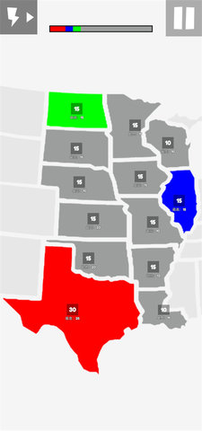 地图战争中文版是一款极简风格的策略对抗类手游,由独立开发者Zack Sima制作,采用抽象色彩区域地图为战场,玩家通过拖动士兵占领灰色中立区或敌方领土,最终将整张地图染成己方颜色即为胜利,你将与AI进行战斗,AI难度从1级到20级,高难度AI会主动集结兵力、切断补给线、围攻孤立据点。