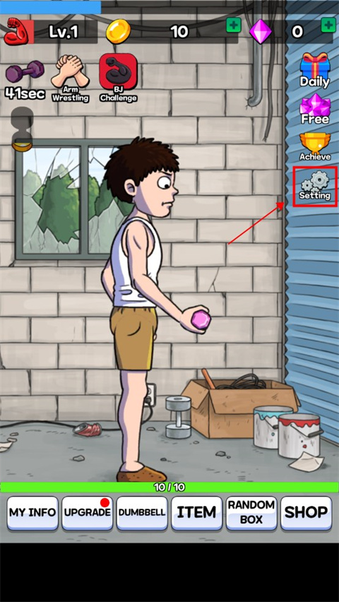 1、进入游戏,点击“setting”设置;