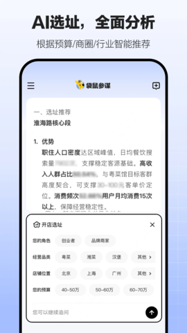 3.执行开店选址模拟:在选址评估功能中,输入或在地图上圈定几个意向地址,系统会综合人流、竞对、消费水平等因素给出各选址的量化评分与风险提示。