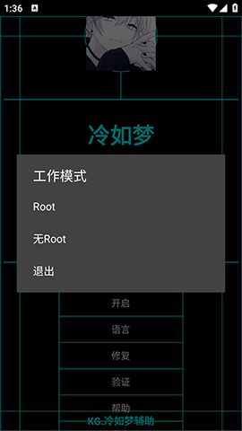 1.启动KG.冷如梦辅助后,首先根据设备情况,在无ROOT模式或已获取ROOT权限的模式中进行选择。