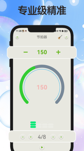 1.基础节拍设定:打开软件后,直接拖动屏幕中央的速度滑块或点击两侧的加减按钮,将BPM(每分钟拍数)调整至目标值,点击下方数字选择每小节的拍数,如4/4拍。