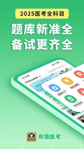 有猿医考是一款面向医学领域从业者及学生的专业备考工具,整合了系统化的课程内容与海量习题资源,构建一个高效的知识巩固与能力提升环境,软件内嵌的智能学习路径能够依据的实际水平动态调整训练重点,从而在有限的时间内实现学习效果的最大化,其课程讲解深入浅出,紧扣各类医学资格认证考试的核心大纲与命题趋势,每日推送的针对性练习与模拟测试则有效强化了知识点的长期记忆与灵活运用能力。