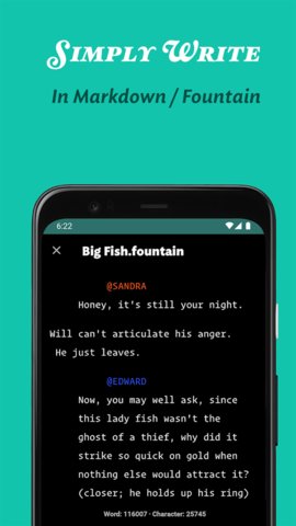 3. 专业剧本格式化:内置强大的剧本创作工具,能够自动将手稿转换为符合行业标准的专业剧本格式,并支持导出为Final Draft等专业格式。
