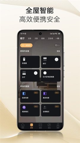 2.情景快速切换:预设了多种贴合日常作息的一键情景模式,离家布防或影院模式,可瞬间联动多个设备进入预定状态。