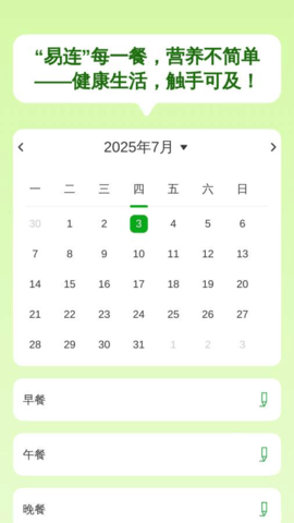 3.饮食记录操作:进入三餐记录功能模块,界面会提供早餐、午餐、晚餐及饮水的独立记录区域,用户可在对应时段点击添加按钮,手动输入或选择预设的饮食内容与大致分量,软件会按日期归档这些数据以供回顾。