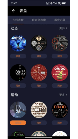 4.更换手表表盘:在表盘市场中浏览或搜索喜欢的表盘样式,点击下载并同步,待进度完成,新表盘便会自动替换手表上的原有界面。