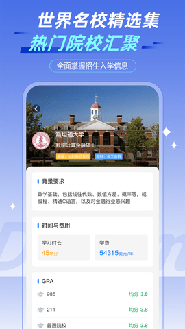 趣留学GO是一款专为有海外求学意向人群设计的综合服务软件,深度整合了全球范围内众多高等教育机构的招生信息,涵盖院校概况、专业设置、入学标准、申请截止日期以及学费生活成本等关键数据。软件内置的智能筛选工具能够依据的学术背景、语言成绩、预算范围和个人偏好,高效地罗列出符合条件的潜在目标院校列表,并可直接在软件内完成初步的院校资料查阅与申请意向提交,极大地简化了传统留学准备过程中复杂的信息检索和比对工作流程。