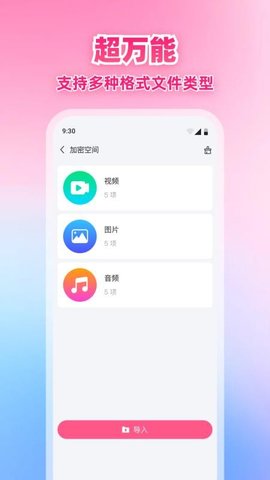 1.隐私加密空间:软件创建了一个独立于系统常规存储区域的加密空间,用户可将私人视频、图片等文件移入访问时必须通过验证,实现了物理级别的数据隔离。