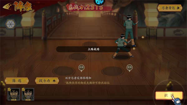 2、选择想要挑战的剧情关卡,搭配好上阵的忍者阵容(可根据关卡难度调整),点击开始挑战。