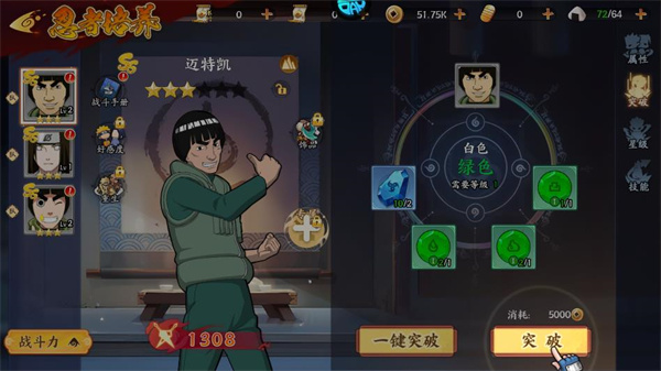 5、忍者等级提升后,可进行突破操作,突破后能大幅提升忍者战力,才能挑战更厉害的敌人,解锁更高难度关卡。