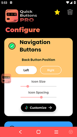 Quick Buttons Pro是一款安卓平台的导航栏定制工具,赋予用户重新定义屏幕底部操作区域的自由,告别系统预设的单一布局,你可以自由排列功能按键的位置,更换们的视觉外观,甚至为常用操作添加快捷手势,这种深度定制不仅让日常操作更顺手,也为手机界面增添了个人风格。