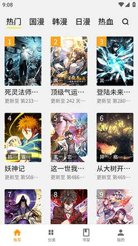 1.探索分类:进入软件主界面后,可以浏览顶部的分类导航栏,热血、恋爱、奇幻等,点击相应标签即可查看该类别下的全部漫画列表。