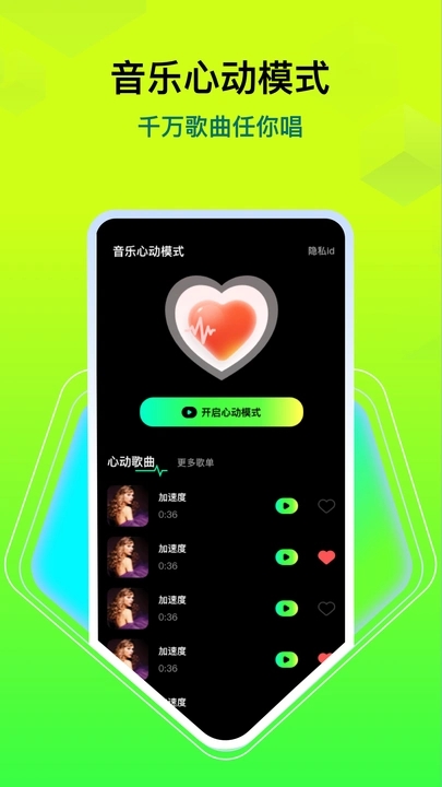 3.探索与收藏内容:在主界面浏览推荐、场景歌单或使用搜索功能查找音乐,遇到喜欢的歌曲,可点击心形图标收藏至我的音乐。