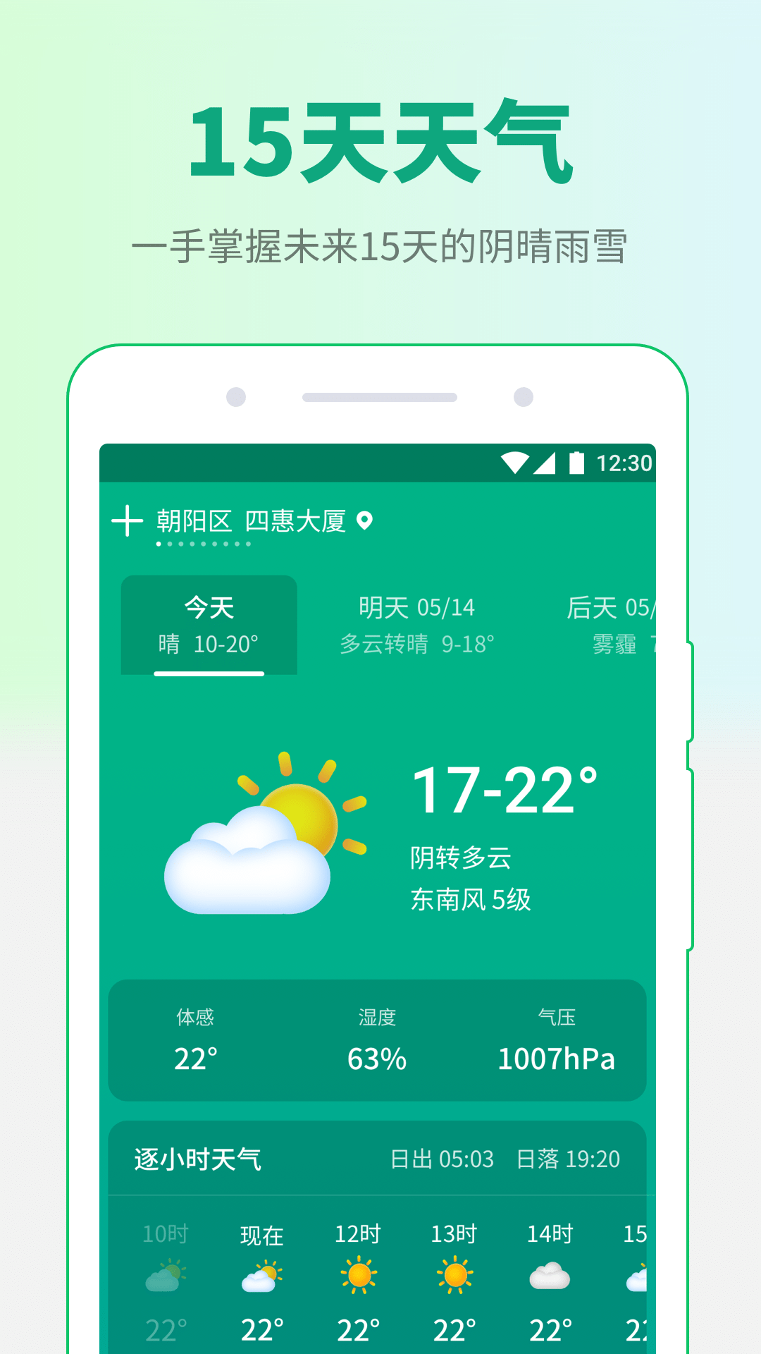 2.动态天气背景:软件主界面的天空景象会根据实时天气状况动态变化,晴天、阴雨或晚霞都栩栩如生。